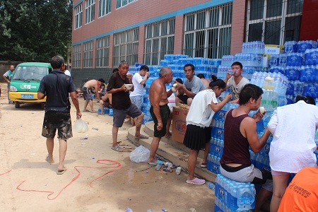 邢臺經濟開發區東汪鎮景家屯村,是邢臺7.19洪水侵襲的重點村之一。從719日晚斷電斷水至今,水電供應因施工難度大,至今仍未恢復。村民一日三餐,僅以礦泉水、方便面(干吃)充饑。