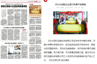 2018年1116日北京日報刊登了河北光源科技有限公司助力京津冀清潔取暖的消息。