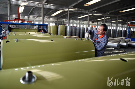 11月10日,河北光源太陽能科技有限公司工人在蓄熱式智能電鍋爐生產(chǎn)線上忙碌。