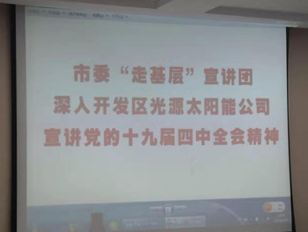 12月3日市委“走基層”宣講團(tuán)一行6人到開發(fā)區(qū)光源太陽能科技有限公司,宣講黨的十九屆四中全會精神。